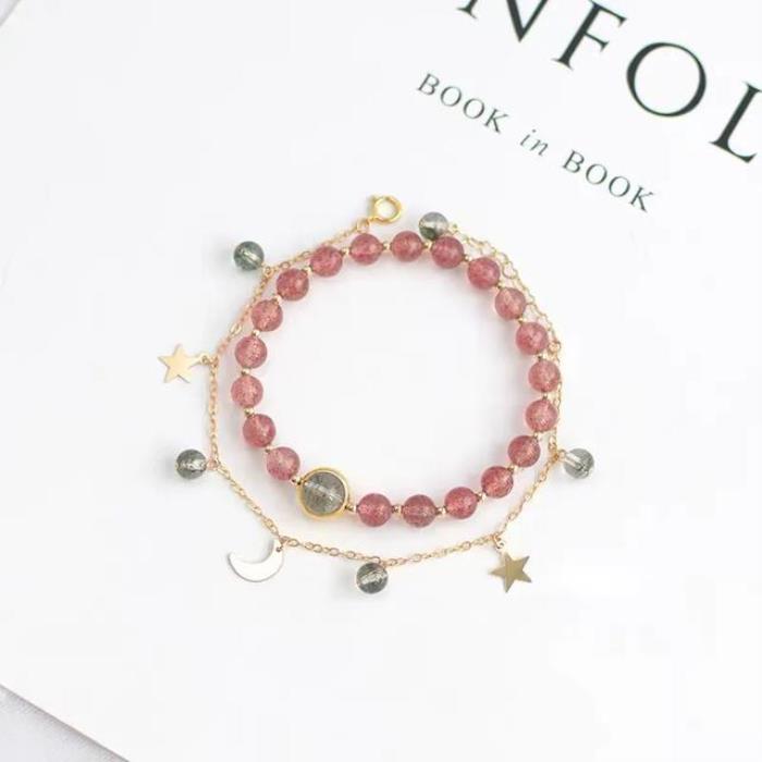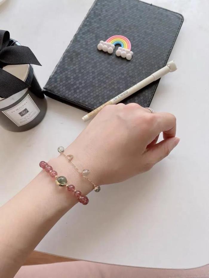11.草莓晶配绿幽灵手链女 天然水晶手串14k