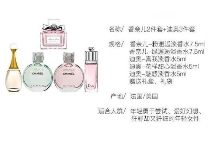 6.想送女朋友一款香水,但是又不知道对方喜欢的味道?这个迪奥+香奈儿的5种热门香水小样套装非常适合纠结的你!