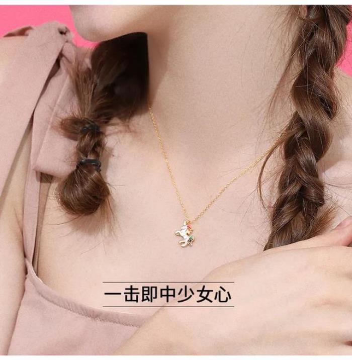 8.JELLY GIRL925银镀金彩色独角兽项链