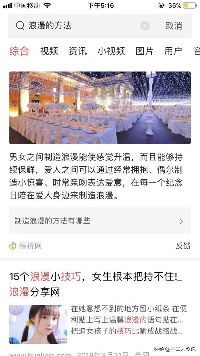 用今日头条app上方的搜索框输入:浪漫的方法,语言浪漫做事也要浪漫