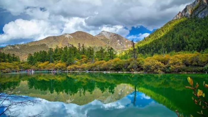 每年10月的稻城亚丁,满山的绿变为金黄与绿色相交融,再慢慢变为金黄色,层林尽染,仿佛秋天的童话世界。