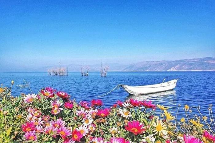 洱海的湖水清澈透底,泛舟湖上犹如穿行在碧绿玻璃表面,配合远处巍巍苍山,美得令人窒息。