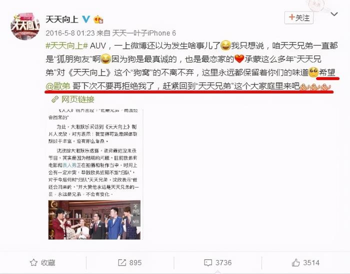 眼看两家粉丝撕得越来越起劲,战火升级,完全不可控了,《天天向上》官方坐不住了,亲自回应,表面上说没什么天天兄弟一直都是“狐朋狗友”,说什么欧弟是因为电影和其他真人秀有冲突没时间回来。