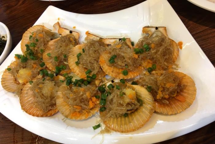粉丝扇贝,粉丝和扇贝再加上了特调的酱汁后在锅里蒸出的一种不一样的美味。
