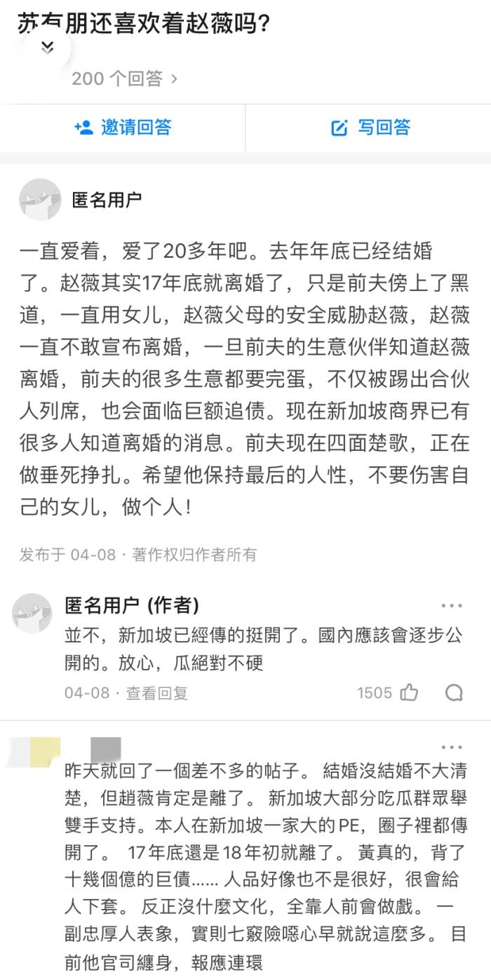 更有自称知情人爆料,赵薇黄有龙17年底就已离婚,黄有龙背了十亿巨债,而赵薇19年底又与苏有朋领证再婚,这简直是惊天大瓜,评论中还有人也站出来证明,不过就单凭18年到19年两人还有互动这一点来说,似乎并不太可信。