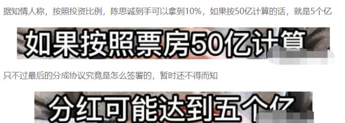 根据知情人预估,这次《唐探3》票房有望达到50亿,如果按照50亿来算,那么预测陈思诚能够分得5亿的收入。所以不谈口碑的话,这次陈思诚也是赢了。