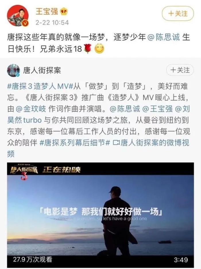 2月22日是陈思诚的43岁生日,对于陈思诚来说,他今年上映的作品《唐探3》虽然口碑褒贬不一但是票房确实实实在在赚得盆满钵满,也让陈思诚成为了百亿票房导演,他43岁的人生也算得意。