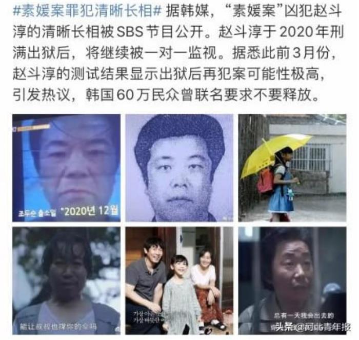 据悉,10月27日,有媒体报道,韩国SBS一节目公开了“素媛案”罪犯赵斗淳的清晰长相。