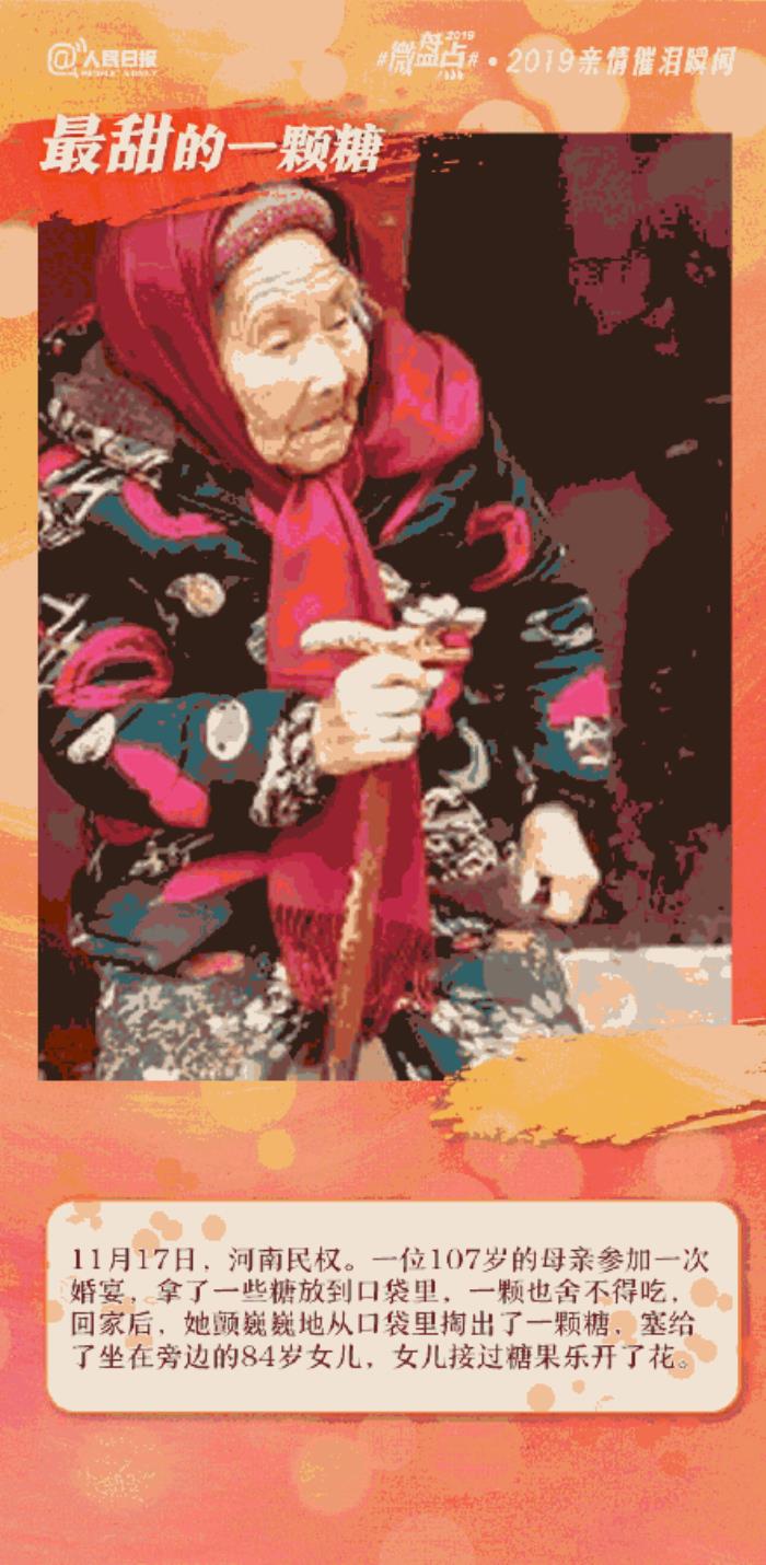 微盘点【2019让人泪目的亲情故事,别忘记,有人一直在爱你】新娘结婚奶奶偷看化妆、107岁妈妈给84岁女儿带了一颗糖、特战预备队员面对父母没忍住泪水……这世上有一种感情,与生俱来,血浓于水,那就是亲情。无论离家多远,他们永远牵挂着你。2019亲情催泪瞬间今年,你什么时候回家?