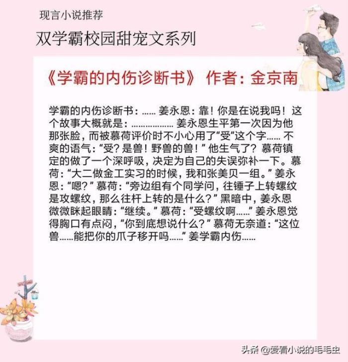 书评:双学霸文。很喜欢这篇文! 一群高中生的故事,青春与成长同步,友情与欢乐并存。男女主都是很强的竞赛生,女主转到男主的班上后,朝着信息学和数学竞赛以及学业努力。男主真真是个大学霸,清冷淡漠,不爱跟人说话,长得又帅,屡次代表学校参加物理竞赛拿奖,因为提前学过了高二物理,