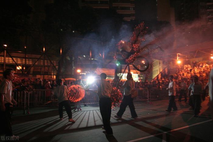 相传在很早以前,香港铜锣湾大坑区,在一次风灾之后,出现了一条大蟒蛇,到处作恶,危害乡邻,村民们非常气愤,大家齐心协力,终于将蟒蛇降服。可第二天却发现蟒蛇不翼而飞,数天后,大坑区便爆发了瘟疫。这时,村中的父老忽然在梦中被菩萨告知,只要在中秋节舞动火龙,就能将瘟疫驱除。从此以后,每到中秋节,舞火龙的习俗就流传下来。