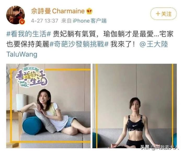前段时间,佘诗曼因为“身材”上了热搜。她在微博上晒出自己的瑜伽照,并发文:“宅在家里也要保持美丽。”