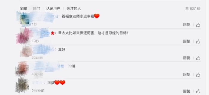 微博评论里全是网友的忠心祝福,许多网友看到后纷纷表示“祝福章老师”“从小到大的偶像”“祝福心中永远的齐天大圣”。