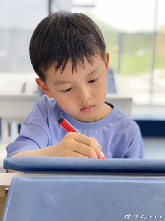 他们对儿子们的教育也是非常用心的,孩子低头认真画画的模样十分乖巧可爱。