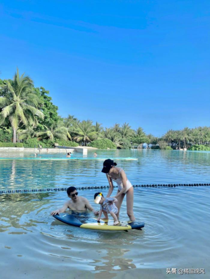 李光洁陪着小娇妻度假游泳,隋雨蒙身着泳衣戴着棒球帽,尽显完美S型曲线身材,一双大长腿甚是迷人。