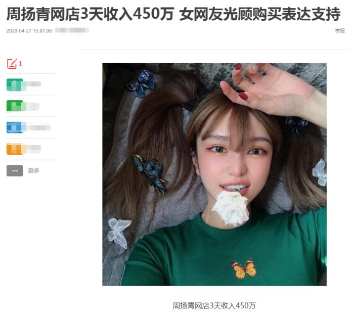 根据最新消息所得,周扬青开的网店3天的营业额达到了450万,不少女同胞表示要去周扬青的网店买几件衣服表示支持一下姐姐。而渣男也受到了他应得的惩罚,据说罗志祥因为这件事情,失去了不少综艺和代言,导致他直接损失了近亿。