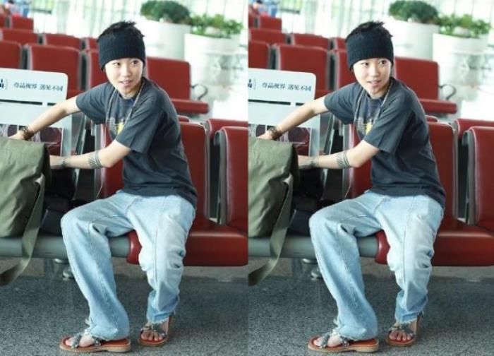 大女儿窦靖童打扮个性中性,酷帅随性放浪不羁。