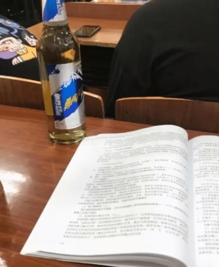 虽然我们青岛人,但是也不代表我口渴了,是要喝啤酒啊。老师还在上边上课,而小姐姐在下边拿着一瓶啤酒。请问一下,我现在是打开好,还是不打开呢?