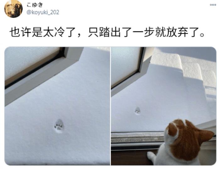 冬天到底有多冷,看看这只小猫咪的反应吧。猫咪是最好奇的生物了,只要能出去,就一定要跑出去玩玩,可是望着外边的大雪,踏出一步的它瞬间撤回了爪子,受不了了。