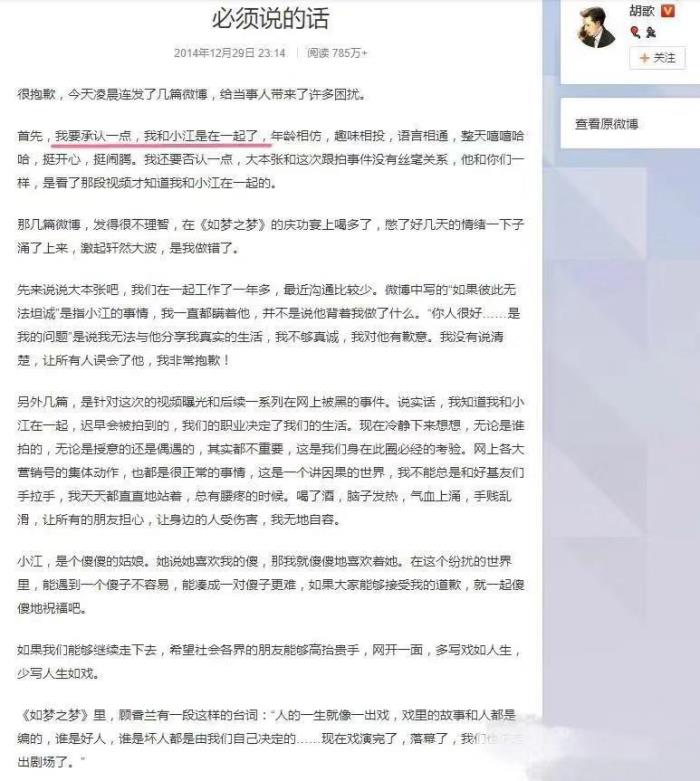 胡歌和江疏影合作《旋风十一人》结缘,胡歌在2014年12月29日承认两人的恋情。