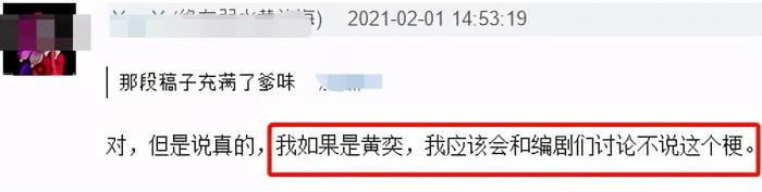 还有网友表示:“如果我是黄奕,我应该会和编剧讨论不说这个梗。”