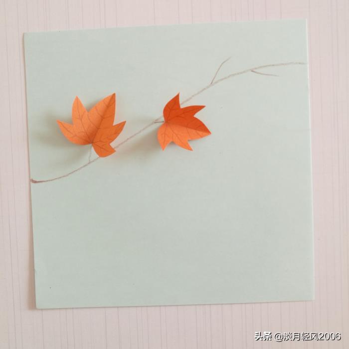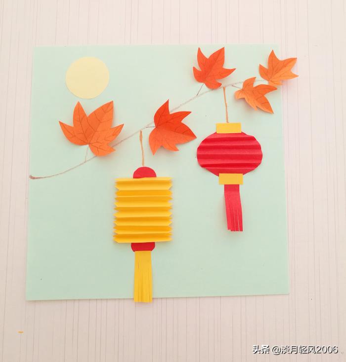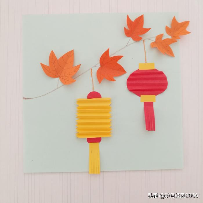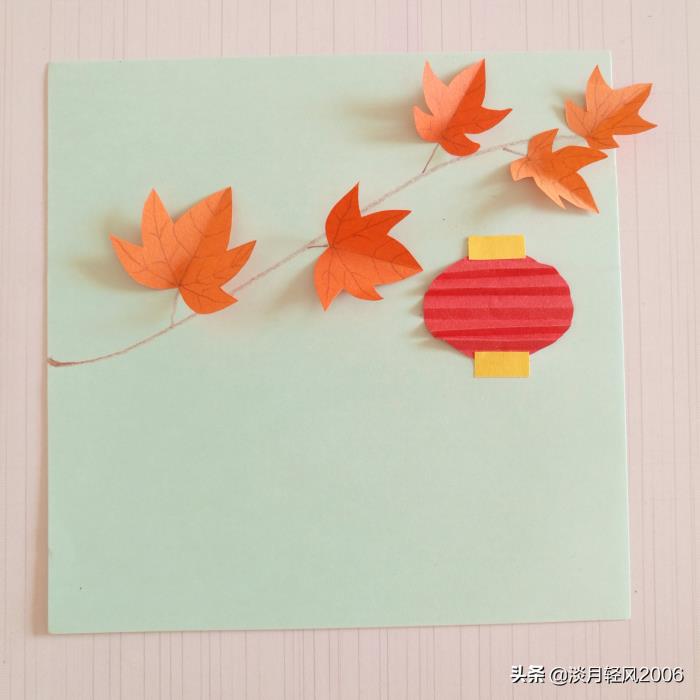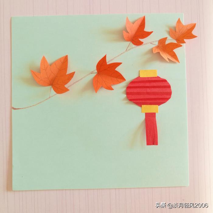 下面我们就贴一幅枫叶灯笼月光图,做成中秋节的贺卡吧。