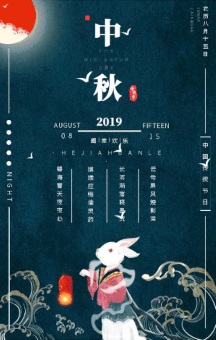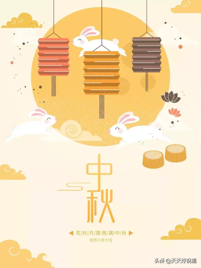 圆圆的月儿天上挂,圆圆的月饼香天涯,圆圆的快乐美如花,圆圆的祝福到你家:美满日子玉润珠圆,幸福生活花好月圆,合家吉祥永团圆。