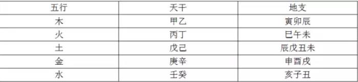 等到生辰八字对应的天干地支都算出来之后,再看下面这张五行/天干/地支表。