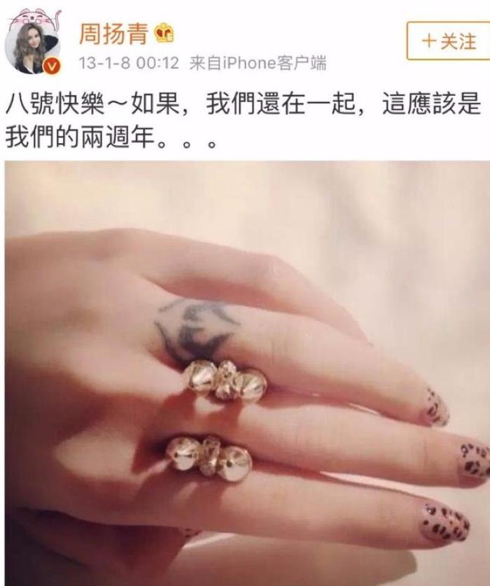 但12年俩人就分了,从12年到14年的这段时间周扬青一直在缅怀这段感情,字里行间满是不舍,看得出她很想挽回。