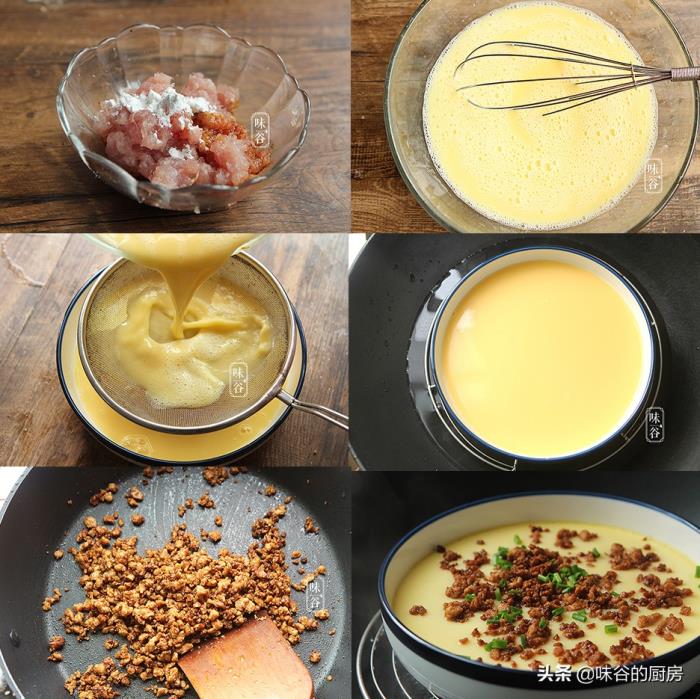【材料】:鸡蛋 5个、肉末 100克、香葱 适量、盐 1茶匙、生抽 2汤匙、老抽 1汤匙、淀粉 半茶匙