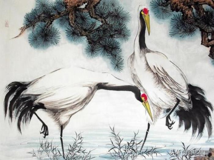 龟游泳,鹤蹁跹。疏梅修竹两清妍。欲知福寿都多少,阁皂清江可比肩。