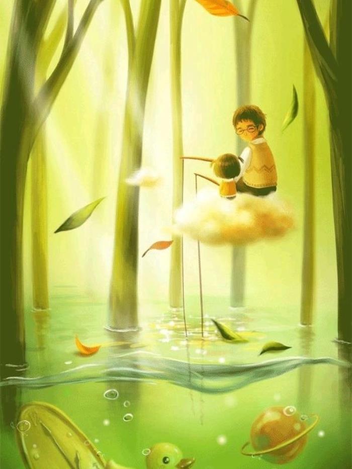 ▼绿洲的插画让我不忍想起朱自清的散文《背景》,父子之情在画面中萦绕,正如《背景》中那无法忘怀的诚挚与沉稳;我还想起《荷塘月色》中所描画的诗情画意,如此清新雅致,所表现的绚丽的意境之美和灵动的色彩之美。插画师绿洲运用质朴的情感,鲜活的画面,对我们描画了一个细腻的情感,在情感中我们可以感受到绚丽的奇幻、含蓄的情感、梦幻的场景。