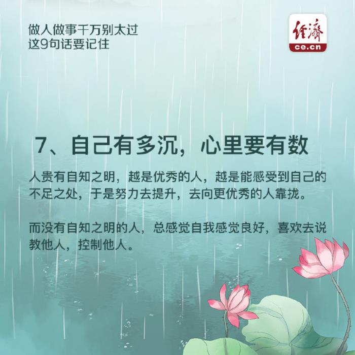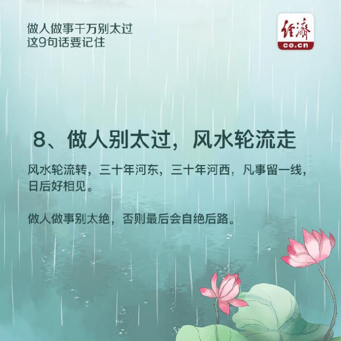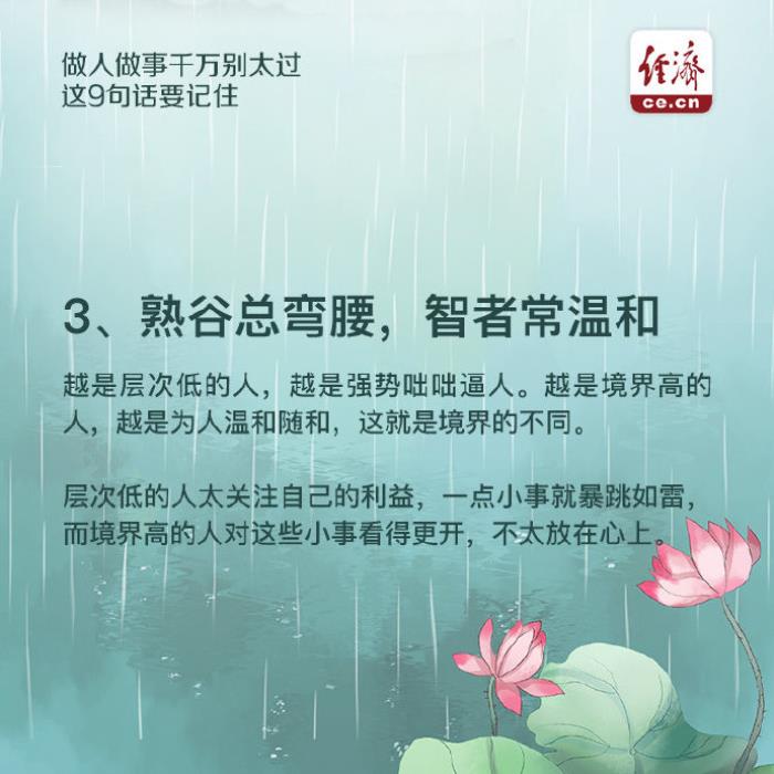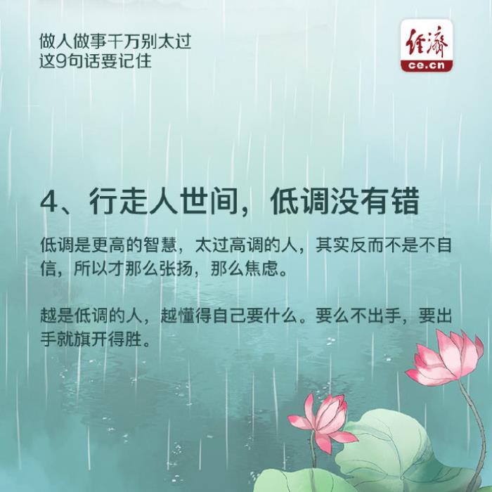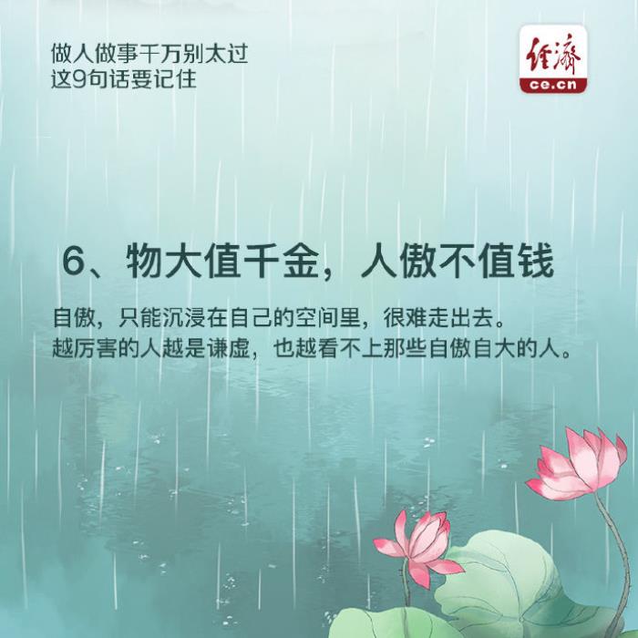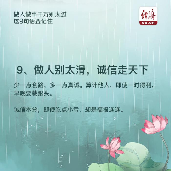 【做人做事千万别太过 这9句话要记住】无论做人还是做事,凡事掌握一个尺度,过犹不及。太过了,就算再有道理,只要为人太苛刻,都不得人心。与人交往少一点套路,多一点真诚。这9句话送给你↓↓