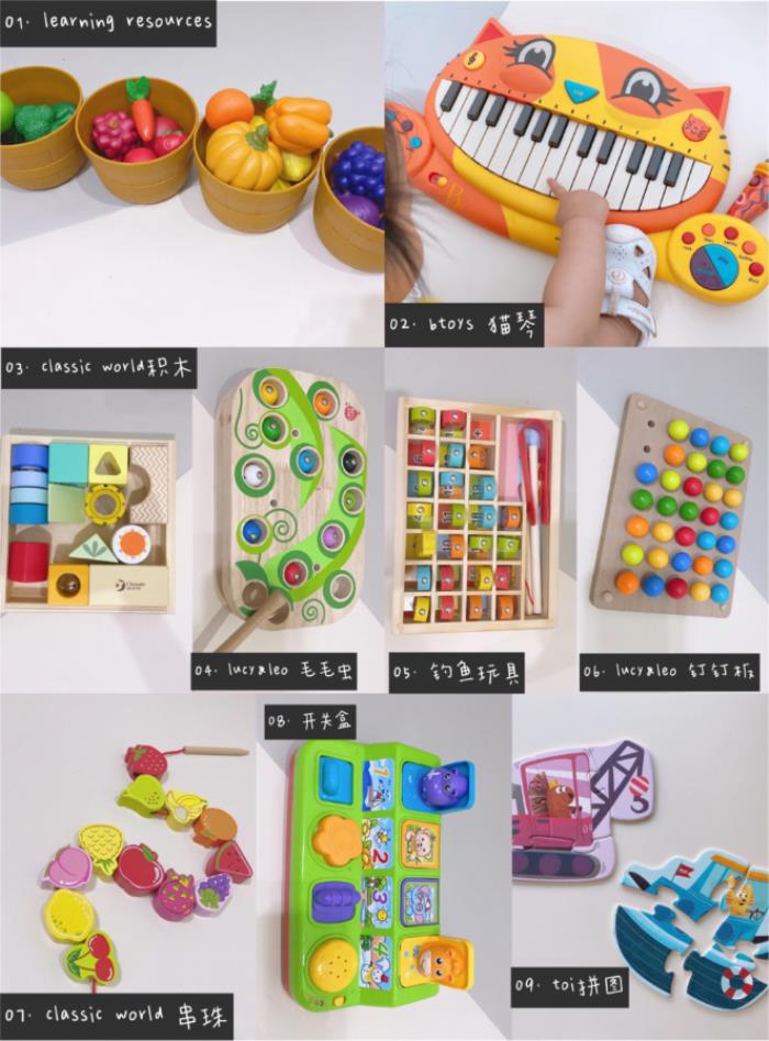 8:00~10:00——玩玩具,锻炼精细动作,给放三字经,带出去散步;