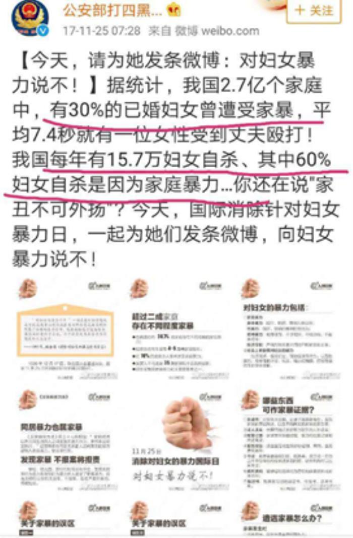 据17年的调查数据显示,在2.7亿个家庭中,30%的女性遭遇过家暴,15.7万自杀妇女60%是因为家庭暴力。