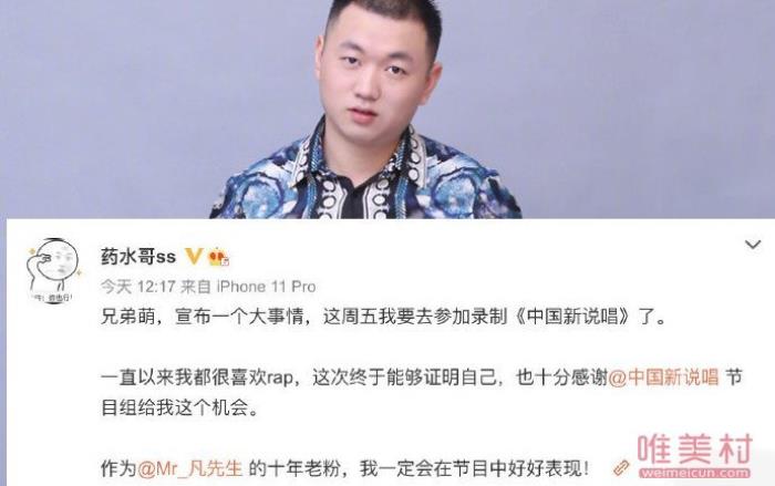 药水哥自曝参加中国新说唱