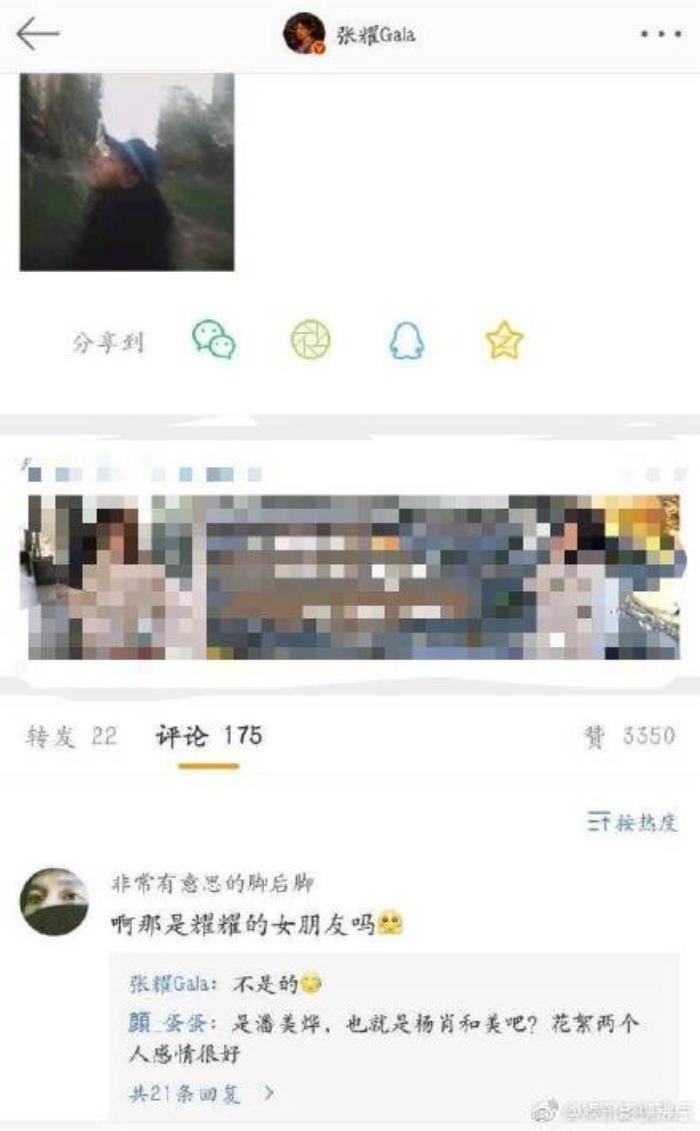 这就是网友发出来的截图了,仔细一看,这背景、这色调还真是同一个地方拍出来的。再加上很多网友表示,之前在《人不彪悍枉少年 》的拍摄花絮中,给人的感觉就不一般。但是既然张耀本人和粉丝后援会都已经辟谣了,那么我们就暂且相信两人只是好友关系,至于后续会不会往恋人方向发展,我们吃瓜群众就拭目以待了。