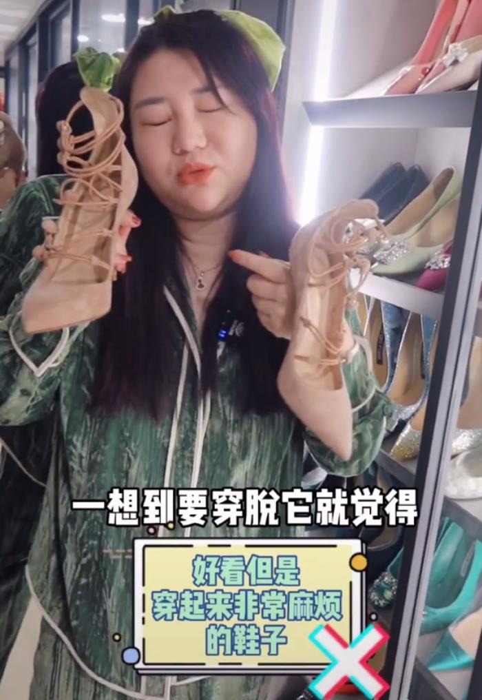 这样一双鞋被杨天真买回来当作摆设,实在令人吃惊,而第二双鞋被吐槽的理由就更直接,因为穿脱太麻烦所以不想穿。