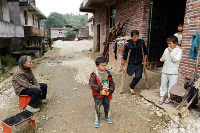 一家五口,四个人没有劳动能力,全靠范家发一人蹦跳着劳作养活。