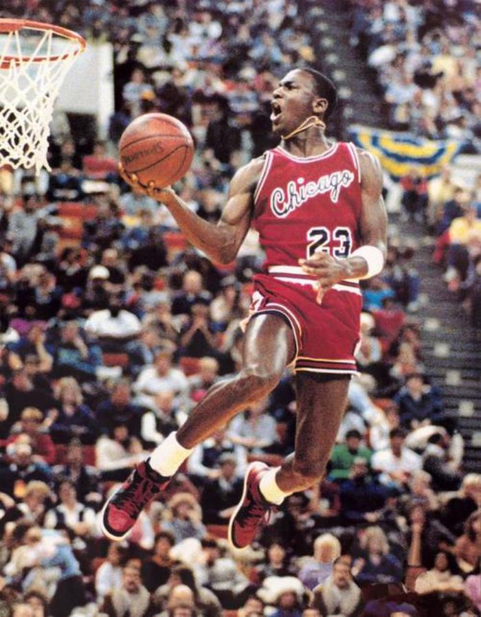 1987年,乔丹完成这记罚球线起跳扣篮时穿的就是AJ3