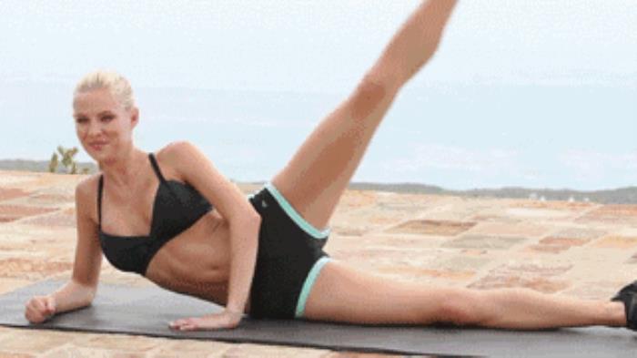 侧向抬腿,这个动作有利于改善大腿内侧的赘肉。