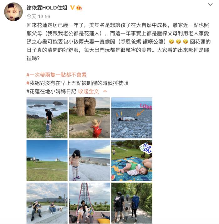 Hold住姐表示这一年都在台湾的花莲住,自己和老公都是花莲人,本来想着距离父母近一些方便照顾,却反而让双方父母帮忙带娃,看得出来谢依霖和公公婆婆相处得很不错,毕竟她的情商不是一般的高。