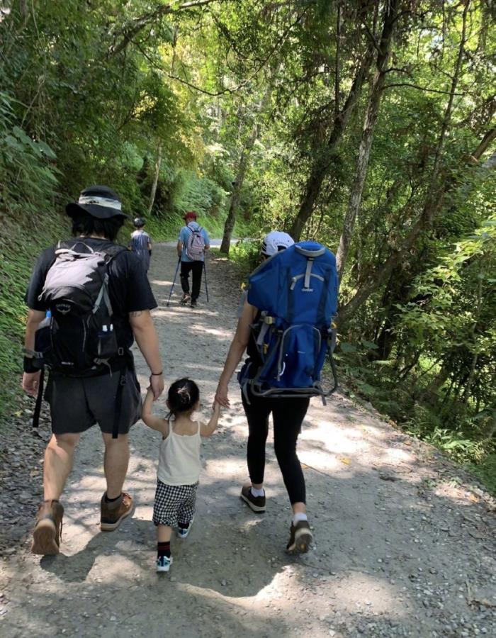 谢依霖和老公牵手女儿徒步登山,在林间大手牵小手,还有比这更温馨的事情吗!