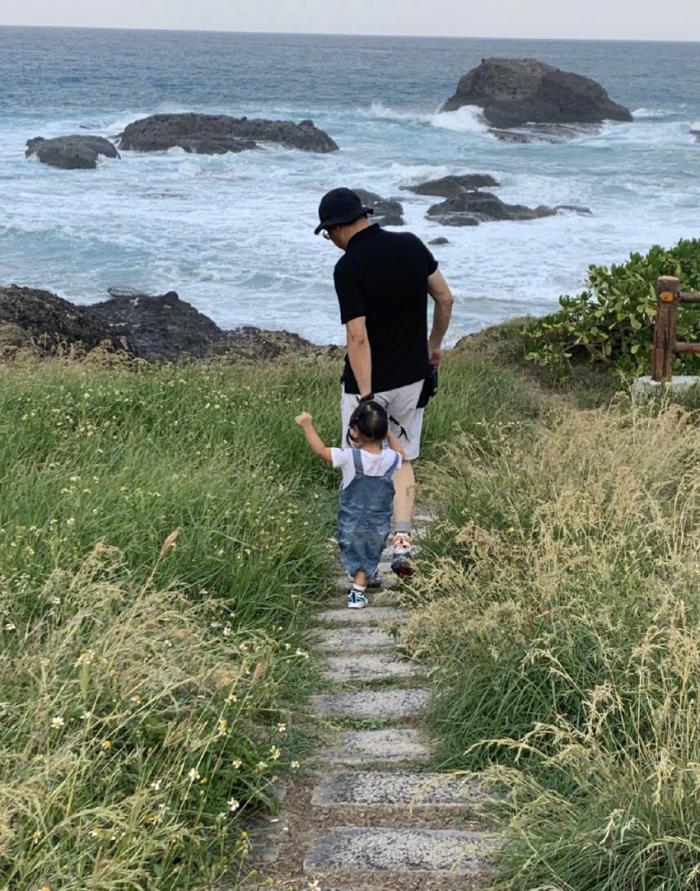 谢依霖的老公难得出镜,不过并没有给正脸,毕竟是圈外人,女儿长得肉乎乎的,背影像爸爸也像妈妈,扎着两个羊角辫,穿着背带裤,真是可可爱爱,像个小跟屁虫似的跟在爸爸的身后。