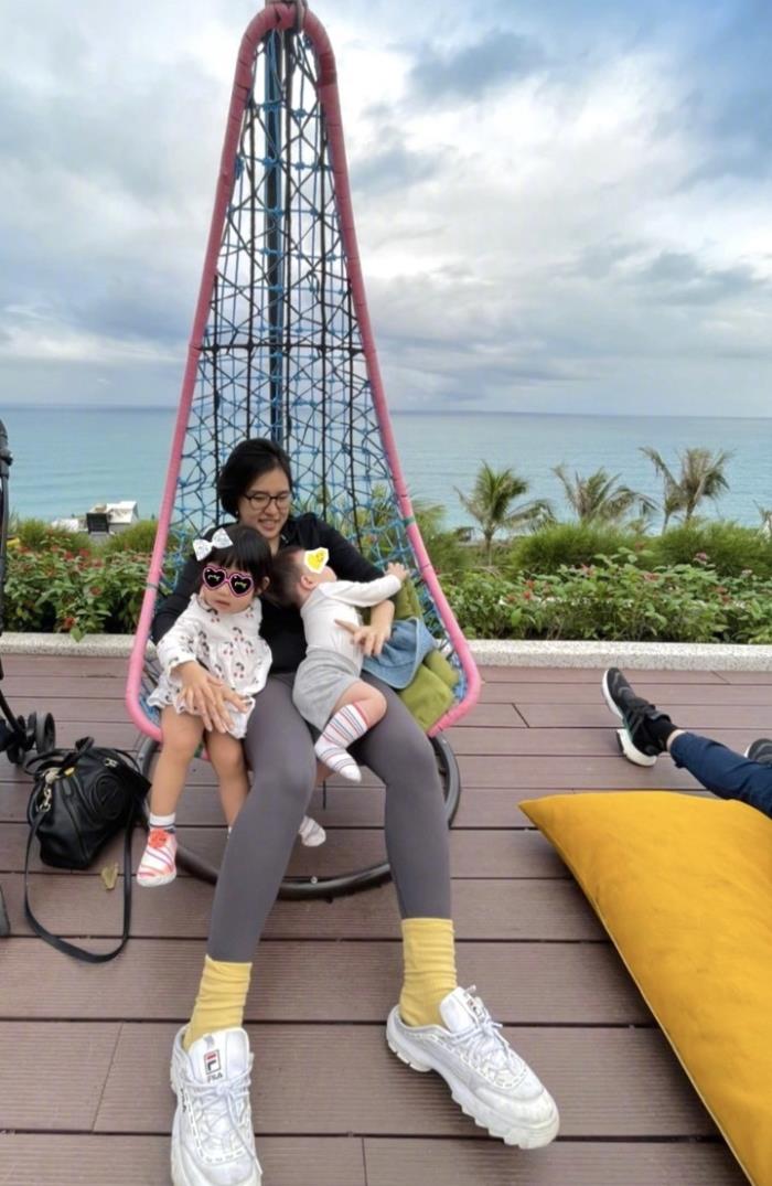 谢依霖一人抱俩,母爱爆棚。不知道照片是不是老公拍的,为她拍出了大长腿。看得出来姐弟俩都很黏妈妈,这一定让她倍感欣慰。