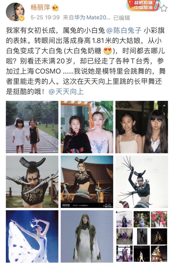 大家都以为杨丽萍会从此后继无人,可欣喜地发现原来还有一个19岁的大姑娘小白兔是杨丽萍的另一继承人,杨丽萍甚至亲自在社交平台为她打call。