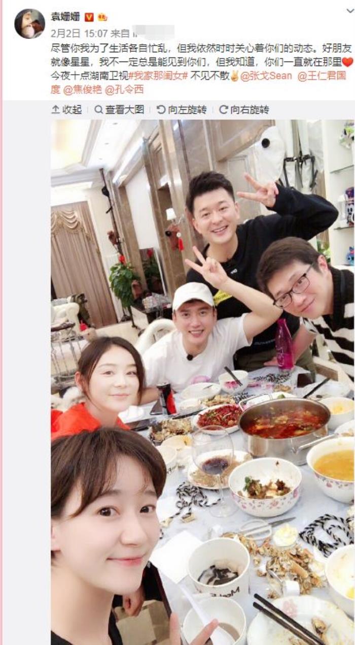 掐指一算,那个时间段,袁姗姗应该也在北京录制“闺女”。因为,袁姗姗几乎同时段邀请了焦俊艳、王仁君、张戈到自己家叙旧情。