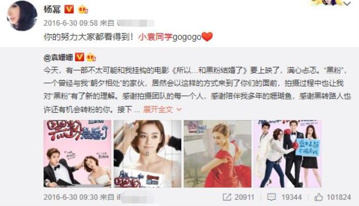 直到2016年时,杨幂才在社交平台给袁姗姗当时的电影做宣传。比起曾说起同宿舍的深情,她们的交集是肉眼可见的减少。