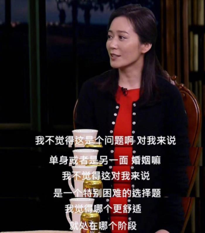 在访谈中,俞飞鸿还直言自己不是独身主义者,也不是不婚主义者,只是处于没结婚的状态,觉得自己并没有那么着急去选择,没必要到什么年龄就必须要有一个实际的婚姻。