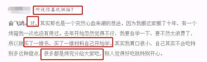闲时在家的时候,俞飞鸿还自学烘焙,没事就烤甜点,然后分给身边人吃,极其贤惠。